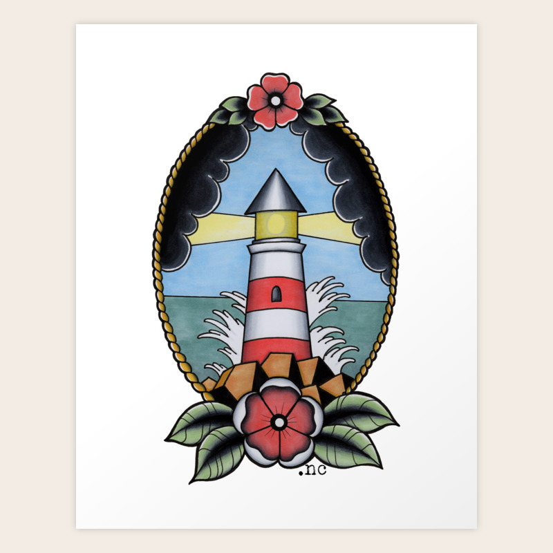 Traditional Tattoo Lighthouse Pastel Art Print By Napiks Society6